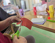 脳卒中や認知症などで体と心に障害のある方に対して、日常生活(食事・整容・更衣・排泄・入浴等)の動作獲得に向け作業活動を通して行います。
